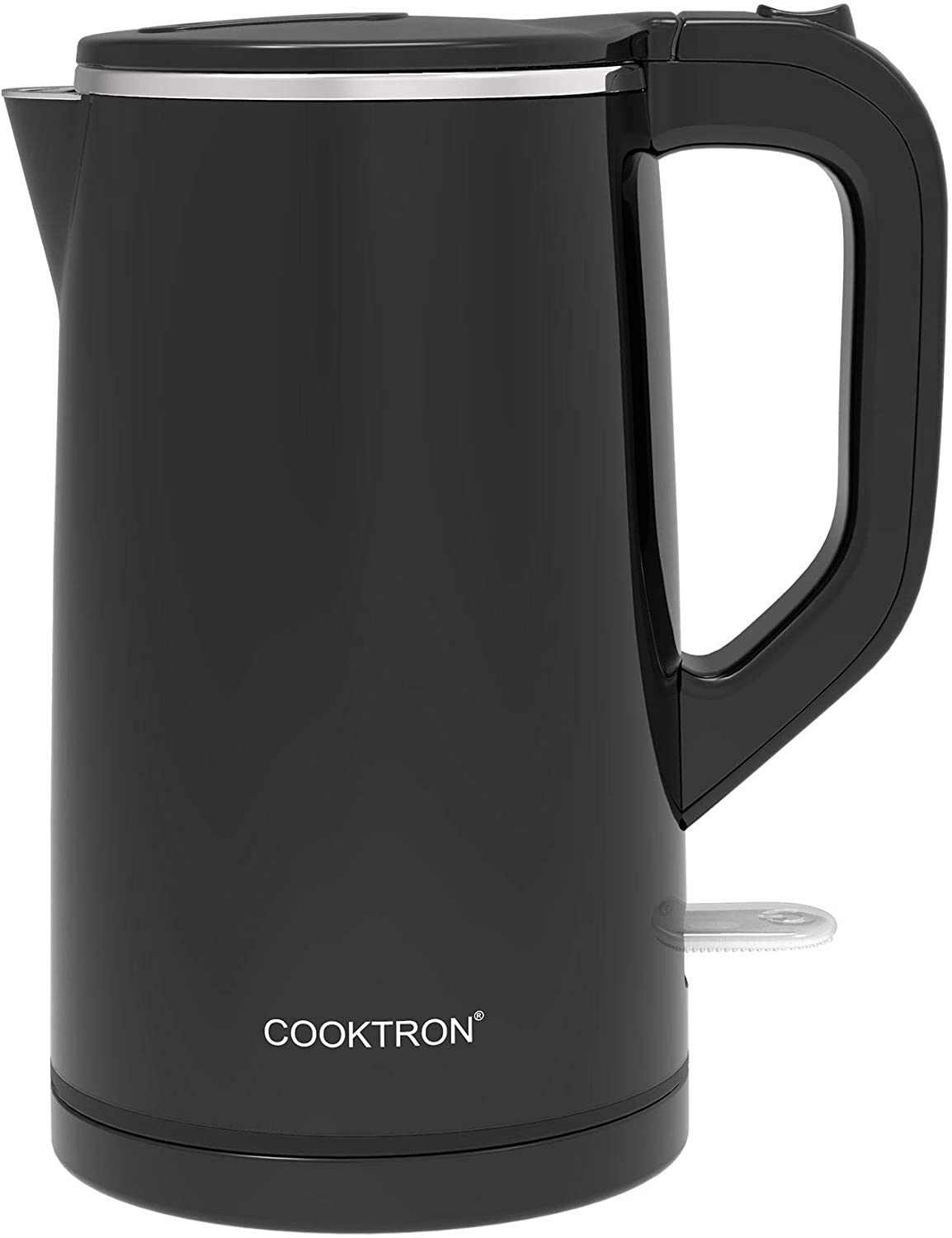 COOKTRON 1.7L Quiet Electric Kettle, Double Wall Hot Water Boiler BPA-Free Cool Touch Tea Kettle, Cordless with Auto Shut-Off & Boil Dry Protection, 1500W Fast Boiling, Black